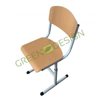 Krēsls sastāv no uzliekamā sēdekļa, atzveltnes un metāla karkasa. Sēdeklis un atzveltne ir izgatavoti no 8–9 mm bieza liektā un līmētā finiera un pārklāti ar 0,4–0,5 mm biezu HPL pārklājumu (high pressure laminate - HPL ir homogēns materiāls, ko iegūst, sapresējot vairākas ar fenola sveķiem piesūcinātas papīra kārtas augsta spiediena un temperatūras presē), kas paildzina krēslu kalpošanas laiku.. Sēdekļa un atzveltnes stūriem ir noapaļojums, lai novērstu traumas. Metāla karkass ir izgatavots no apaļām caurulēm ar diametru 25 mm un 32 mm. Karkass ir pārklāts ar pulverkrāsu. Regulēšana tiek veikta ar caurumotu skrūvju un uzgriežņu savienojumu, kurā uzgrieznis ir fiksēts caurulē, lai novērstu tā atskrūvēšanos, atslābinot. Karkasa galos ir piestiprināti plastmasas uzgaļi, kas novērš skolēnu traumas un grīdas bojājumus. Augstuma regulēšanas vietās ir uzstādīta pārejas iekšējā poliuretāna ieliktņa, kas nodrošina vienmērīgu regulēšanu, novērš čīkstoņu un skrāpējumus augstuma regulēšanas laikā. Atzveltnes un sēdekļa piestiprināšana pie krēsla rāmja tiek veikta ar speciālas sēnītes formas skrūvēm un noapaļotām uzgriežņiem, kas pasargā no traumām un apģērba bojājumiem. Rāmja apakšējā daļā ir atvērums, caur kuru, regulējot krēsla augstumu, ir redzams auguma grupu marķējums. Krāsainā marķējuma atbilstoši auguma grupām ir uzklāts apļa veidā, kura diametrs ir apmēram 10 mm. Tāpat uz metāla rāmja ar lāzera gravējumu ir uzklāta auguma grupu marķējuma skala.